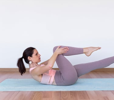 En esta sesión realizo una adatación de la técnica Pilates en la técnica TABATA (entrenamiento de intervalos). Este método consiste en hacer 8 rondas de 20 segundos de trabajo y 10 segundos de descanso y tiene una duración total de 4 minutos.