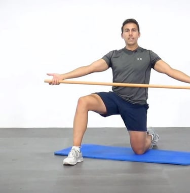 En esta sesión con palo de escoba se realizan ejercicios para la columna, movilidad y estabilización de la pelvis, movilidad y flexibilidad de hombros. Combinamos ejercicios de fuerza, equilibrio y coordinación. También estimulamos la fuerza de piernas.