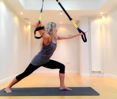 El TRX suena a fitness y entrenamiento de la NAVY, y parece muy lejos del mundo del yoga. Es verdad que el origen de estas cintas en suspensión (atadas al techo o en la pared) se crearon para el ejercito americano, pero los yoguis han sabido aprovecharlas para profundizar o practicar el yoga de otra manera. Usar herramientas no es nuevo. El maestro de yoga, BKS Iyengar fue uno de los primeros en incluir herramientas y cuerdas en su práctica, también son se usan cintas, cojines, mantas y bloques en yoga terapéutico y en Yin yoga, ¿por qué no con cintas TRX? 😊Es muy interesante el uso del centro o core, del equilibrio y de la fuerza. La metodología es distinta al yoga tradicional porque tienes que estar atento en cada momento para entrar y salir de la postura porque las cintas que sirven de apoyo son inestables. Una vez en la postura trabajas los mismos grupos musculares, aperturas o estiramientos pero con apoyo distintos, puede ser más difícil o más suave. ⭐Beneficios del Yoga TRX: 💎El TRX es una herramienta para evolucionar en las Asanas y llevar su practica a otro nivel. Permite ganar fuerza, flexibilidad, estabilidad y equilibro en tu cuerpo. 💎Las correas a ser inestable añade fuerza y resistencia en la musculatura profunda. El cuerpo tiene que ajustarse y adaptarse en cualquier momento, igual que la concentración tiene que ser máxima para no perder el equilibro en las posturas. 💎El TRX enseña a sentirse más conectado con su centro de gravedad, aumenta la consciencia del la zona lumbar abdominal para llegar a posturas físicas más desafiantes como por ejemplo las posturas invertidas. 💎Personas con mucha flexibilidad le ayudara a fortalecer sus articulaciones y músculos debilitados y le enseñara a abrazar enérgicamente sus músculos mientras mantienen sus posturas de yoga. 💎En ciertas asanas, las correas te ayudara a entrar en un lado mas restaurativo, facilitando al cuerpo a relajarse para crear aperturas internas. 💎Tu equilibro se mejorara en las posturas de pie, las correas te ayudara a enraizar la pierna de base mientras la otra se queda suspendida. 💎Enseña a moverse con fluidez y precisión creando movimientos suaves y consistente que ayudar a crear la memoria muscular para fluir mejor a la hora de tu practica de yoga.